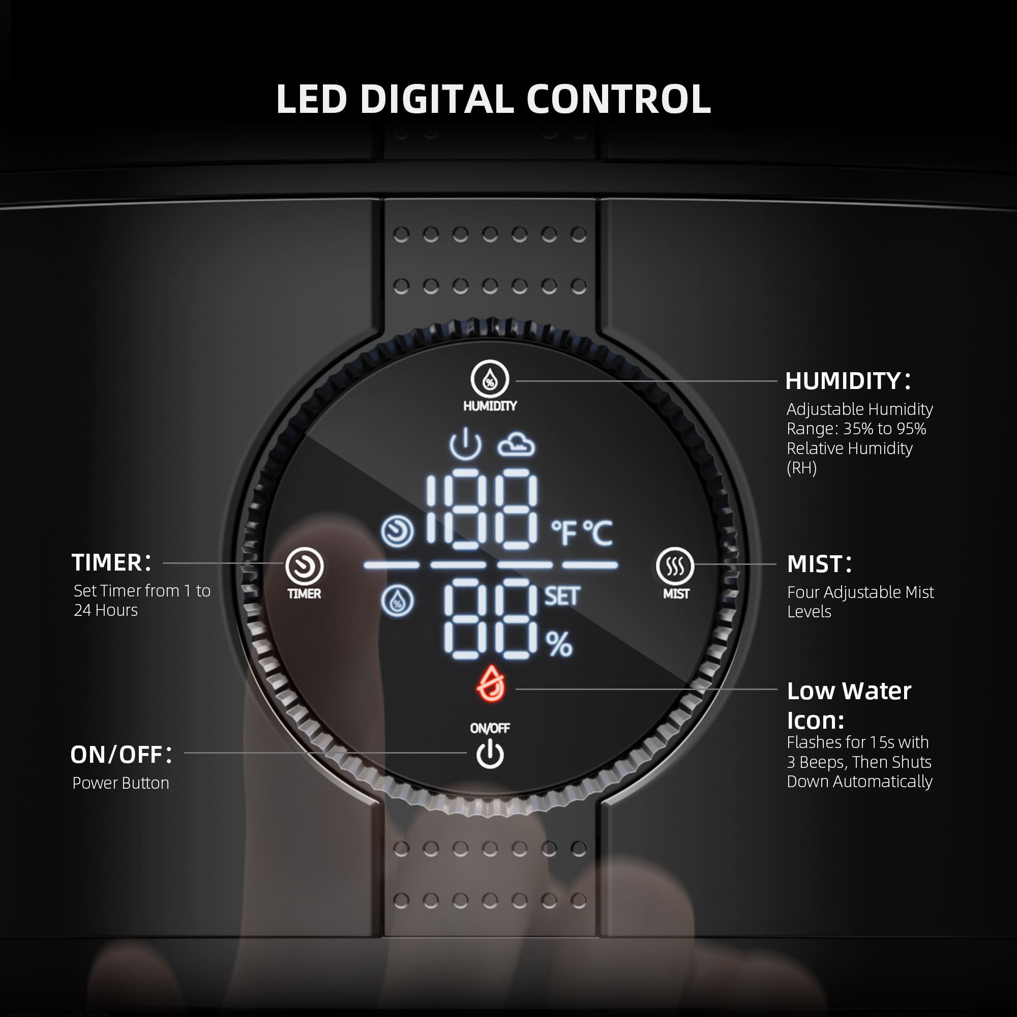 Spider Farmer humidifier LED digital display with adjustable humidity levels and timer control